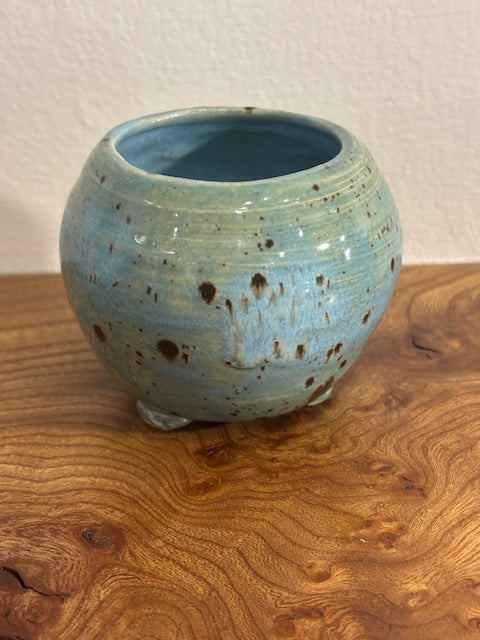 Hand-thrown sugar bowl in a Japanese-inspired design with a speckled duck egg blue and bronze glaze. Each bowl is hand thrown making it unique. Made from high-quality English stoneware clay. Matching items are available.