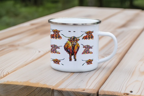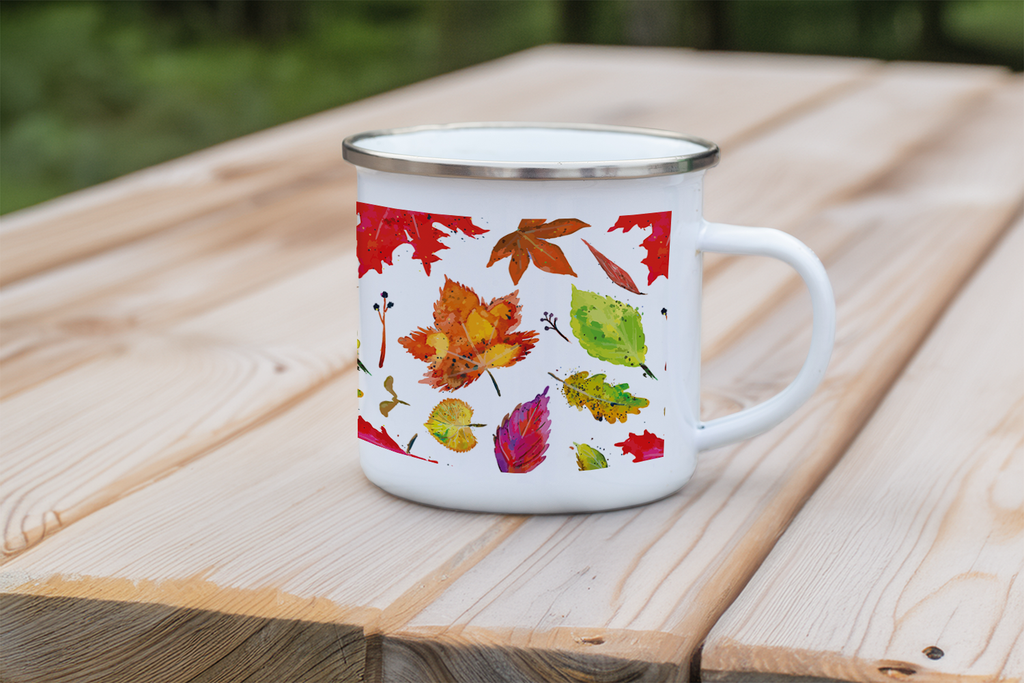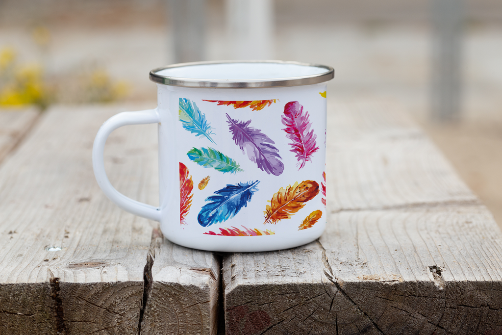 Enjoy your favourite hot or cold drinks with these elegant enamel mugs featuring vibrant prints of Christine Allan's beautiful artworks.