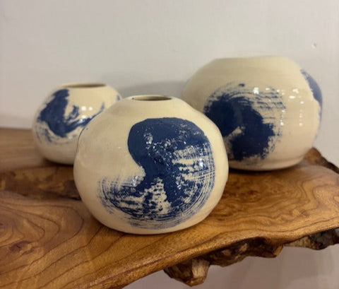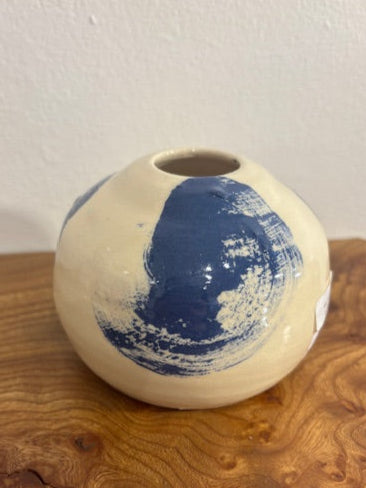 Hand- made stoneware vase in a Japanese-inspired design with a variety of glazes over stoneware, giving beautiful, varied tones.