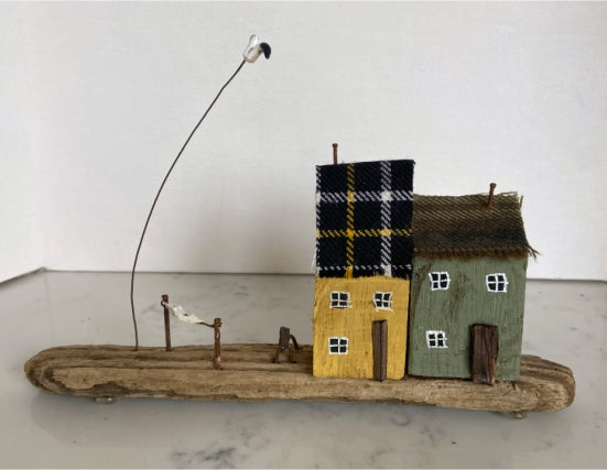 Emma's artworks are created using found items, salvaged treasures and many include pieces of whisky barrel lids and driftwood.