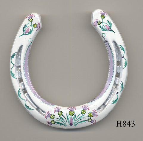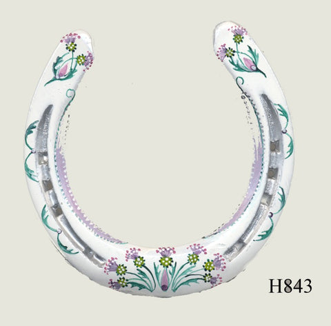 All horseshoes are genuine used shoes. They are thoroughly cleaned, under-painted with white and decorated using special enamel paint.