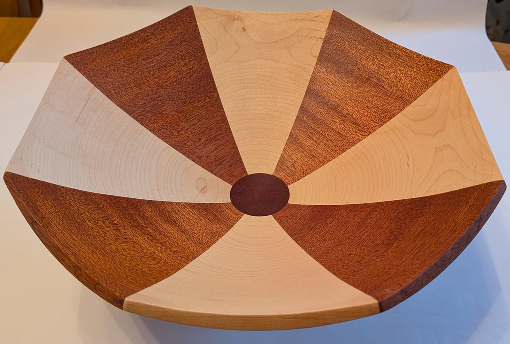 A bow inspired by the art deco movement. Made in Maple and Mahogany and finished in Bees wax.