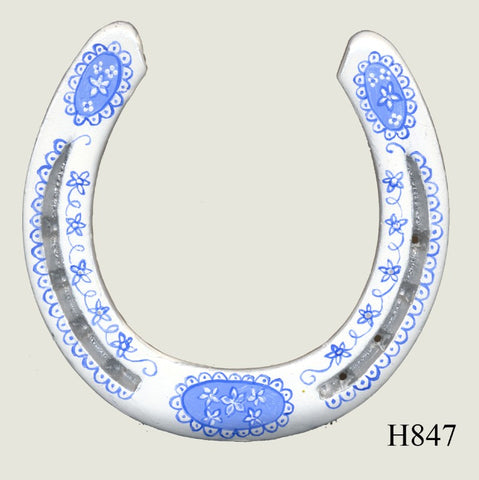 All horseshoes are genuine used shoes. They are thoroughly cleaned, under-painted with white and decorated using special enamel paint.